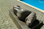 Albertas creates his art from stone, wood, and metal. His sculptures are monumental and have a clear compositional structure. The subjects of Albertas’ creations have changed over time. His early wood works can be distinguished by their similarity to the ritualistic sculptures of the old Balts. “Medeina”, “Zvaigzdiklis”, “Zemyna”, “Gabija”, and others share this quality. Albertas’ tomb sculptures have “floating” forms and expressive factures. They are closely related to the Christian tradition. Christ’s face, a head crowned by thorns, and representations of Mary’s figure can be seen in works such as “Tyla”(“Silence”), “Tevui”(“For Father”), “Liudesys”(“Sorrow”). Albertas participated in the competition for Gediminas’ monument in Vilnius, and in various symposiums in Juodkrante ( in 1997 and in 1999 symposiums of stone sculpture), Wales (in 2000), and Vilkaviskis(a symposium of folk masters). In recent years, he has been creating fire sculptures in Juodkrante and Plunge. Together with his wife Kristina (artist, creating phytocollages) and his daughter Ula (VDA student), they have organized many art exhibitions in Lithuania. Among others places, the exhibitions have been held at the “Lango” and “Lietuvos Aidas” galleries in Vilnius, in the F. Bajoraitis library in Silute, at the Oginskiai Palace in Plunge, and at the exhibition galleries of Juodkrante. Albertas' sculptures can be found in various private collections in Lithuania, the USA, Germany, Austria, and England.